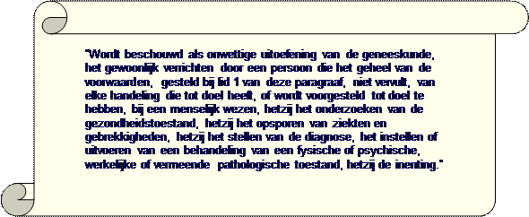 dat men een positieve definitie zou geven van wat geneeskunde is. Maar de wettekst geeft een negatieve
